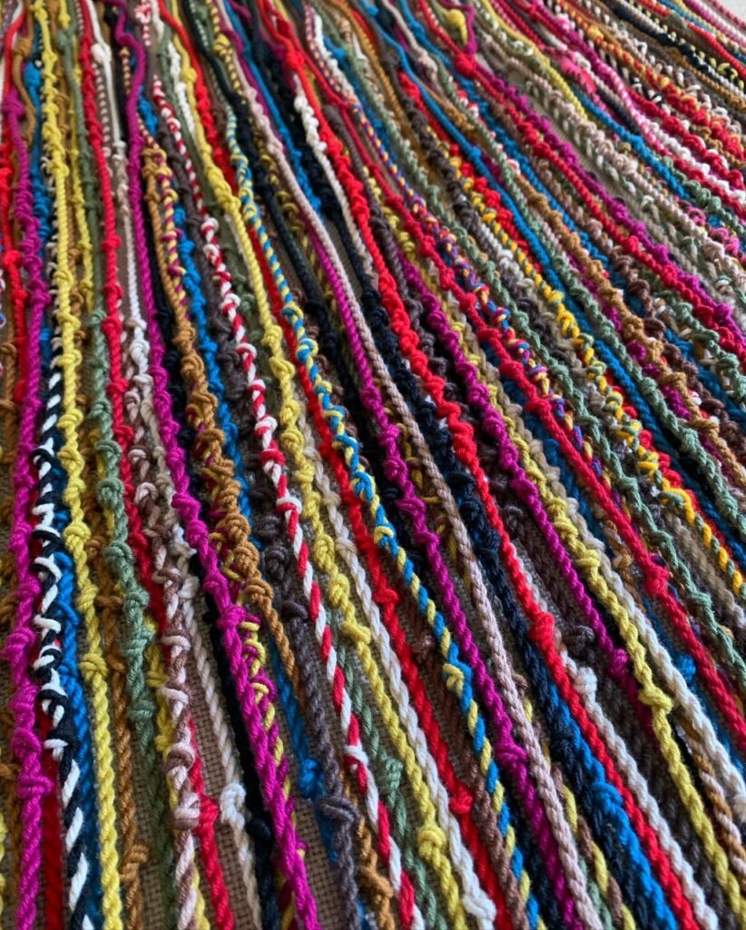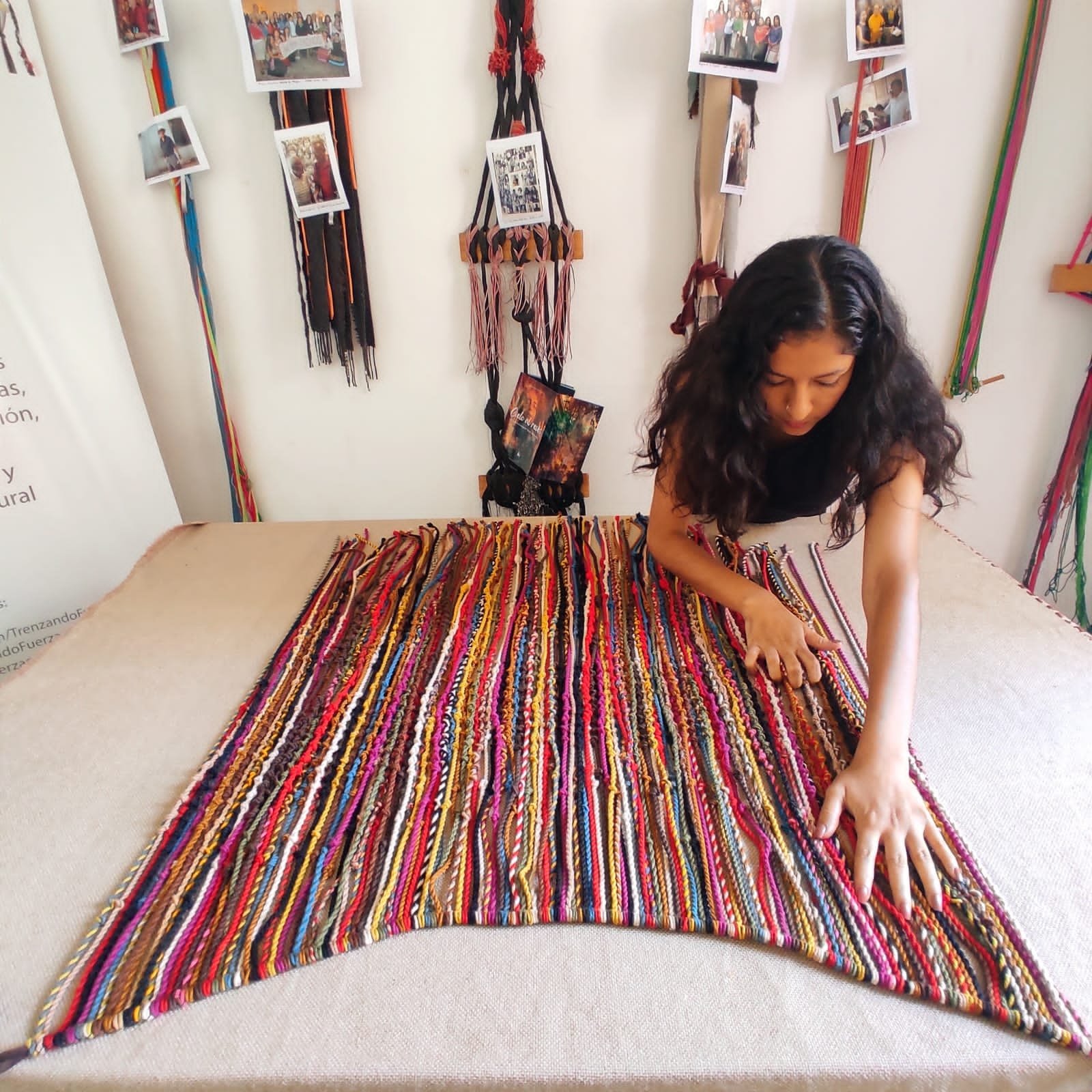 Esta obra fusiona la herencia técnica del textil andino con un lenguaje contemporáneo, demostrando cómo la tradición puede resignificarse y cobrar nueva vida en el arte actual.