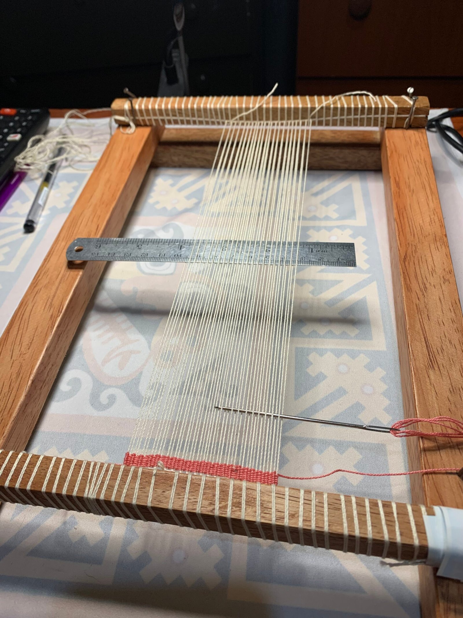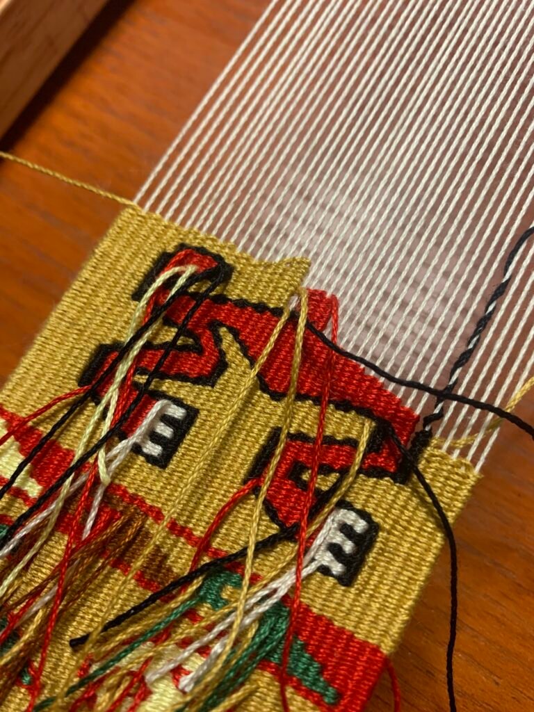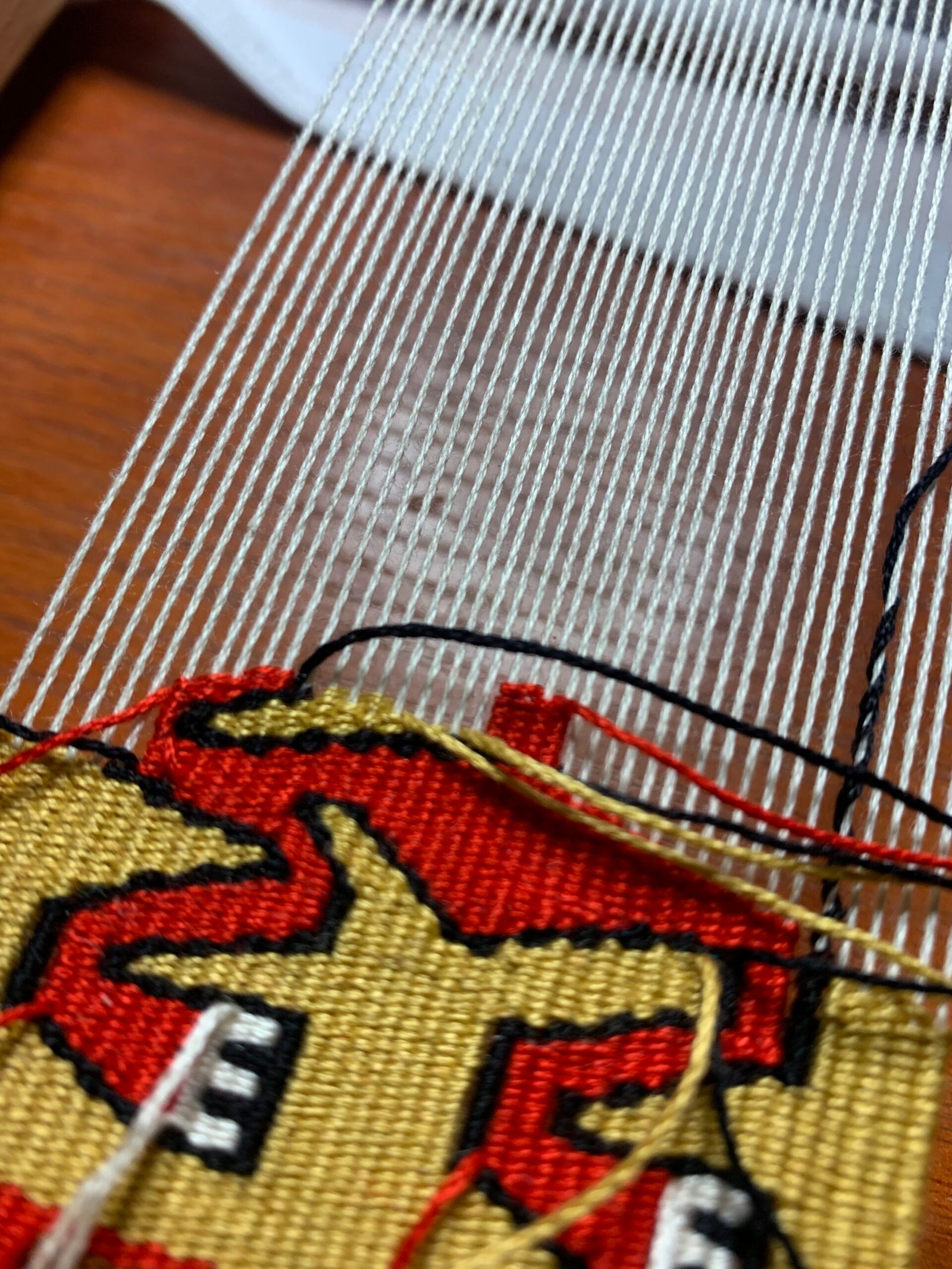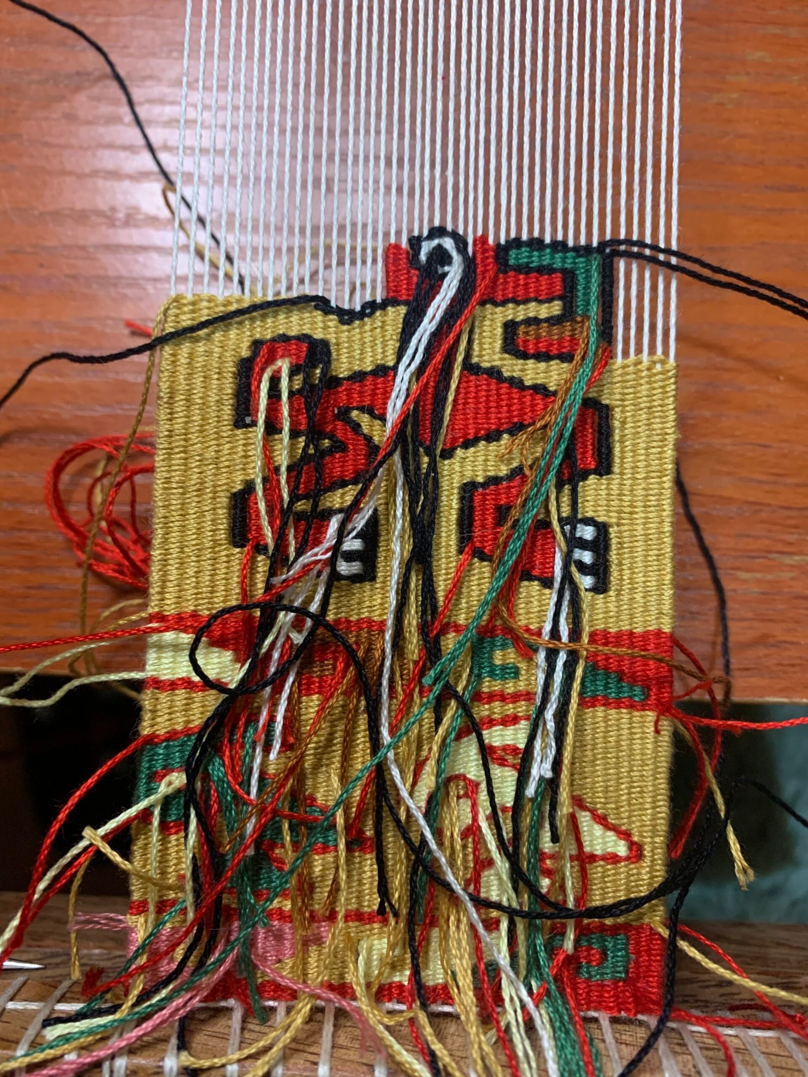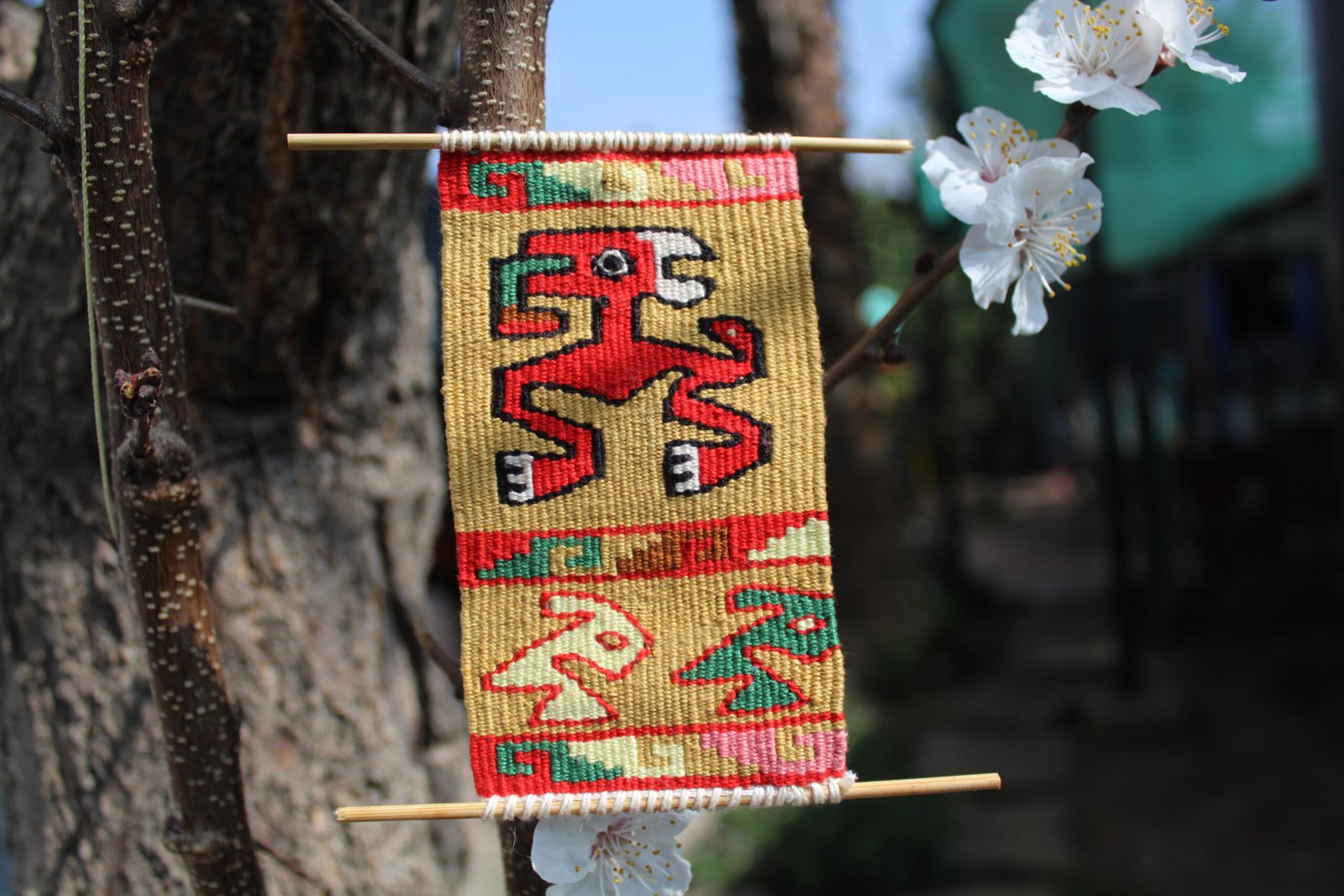 Esta pieza es una réplica inspirada en un textil de la cultura Chancay (1200–1400 d.C.), reconocida por su refinado trabajo en técnicas y diseños. Representa un motivo zoomorfo y está elaborada con la técnica de faz de trama, caracterizada por mostrar predominantemente la trama en la superficie de la pieza.Fue realizada en el marco de las clases del Museo de Arqueología y Antropología de la Universidad Nacional Mayor de San Marcos, bajo la investigación y manuales del maestro Andrés Yntusca García.