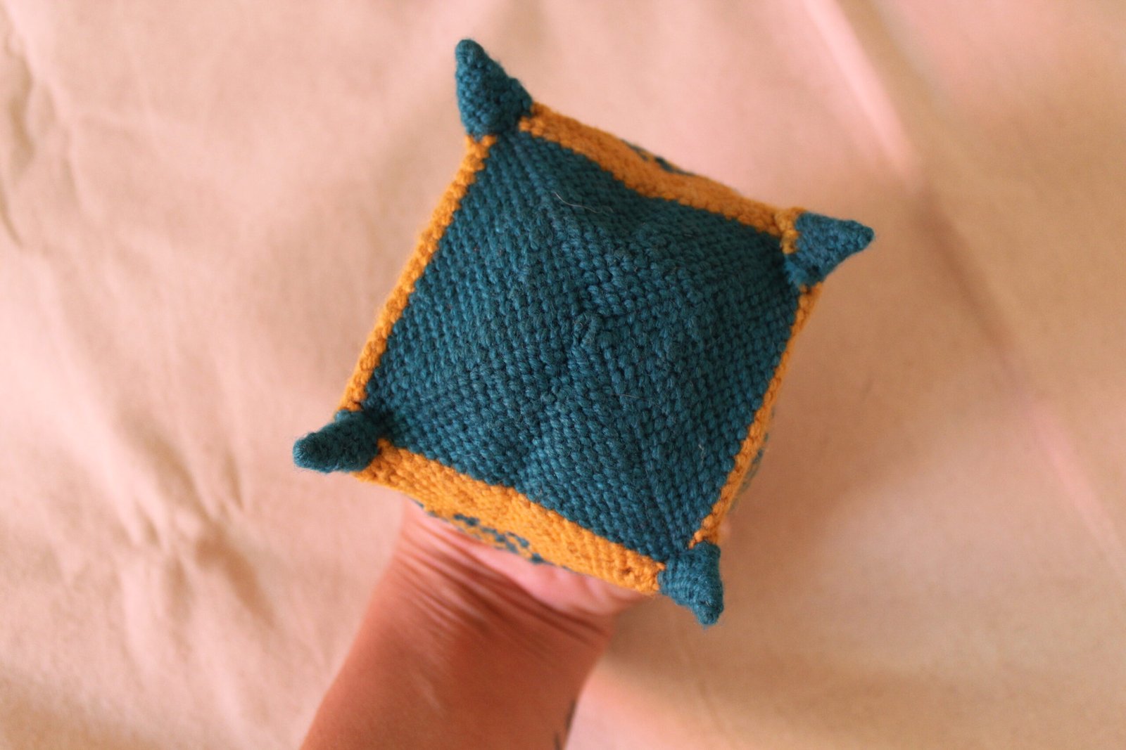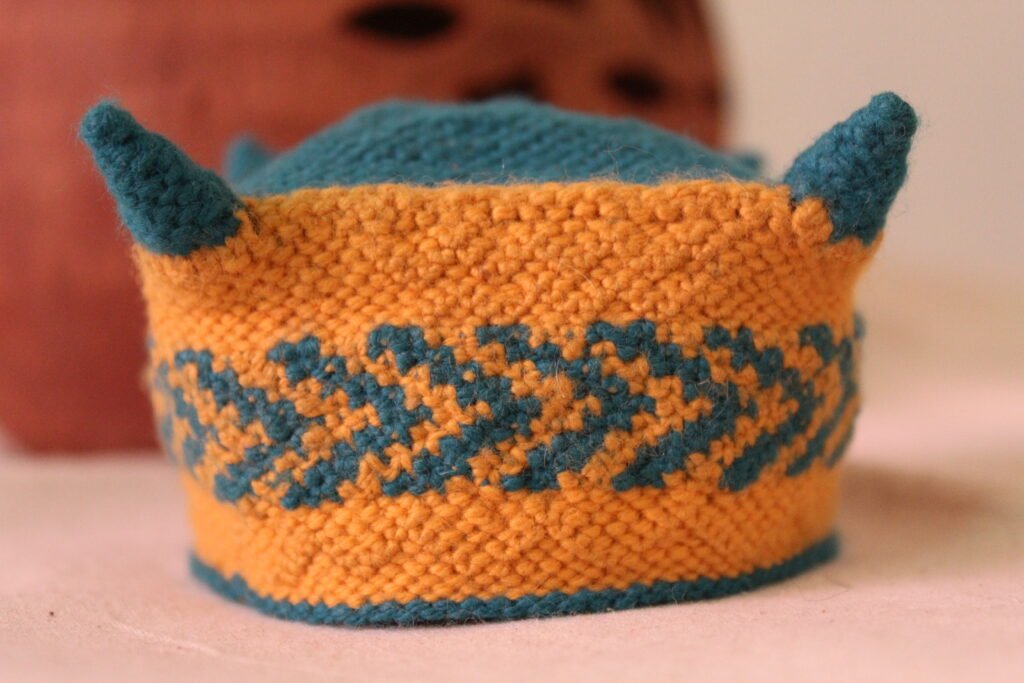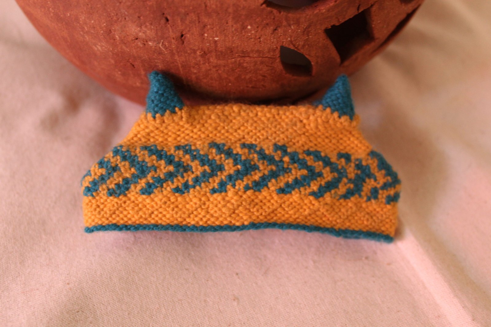 El gorro de cuatro puntas es una pieza emblemática de las culturas precolombinas Wari y Tiahuanaco, donde tuvo un profundo significado social y simbólico. Su diseño, compuesto por cuatro prolongaciones en las esquinas, no solo cumplía una función estética, sino que también comunicaba identidad y estatus dentro de la comunidad.Esta obra fue elaborada en un taller dirigido por la maestra Isabel Martínez, aplicando la técnica de anillado compuesto para construir tanto la estructura como los diseños que lo ornamentan. La minuciosidad en su ejecución rinde homenaje a la complejidad y refinamiento de la tradición textil andina, preservando un legado que ha perdurado por siglos.